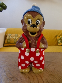 デンマークの銀行のノベルティーです。その名もRasmus君。子供の絵本のキャラクターの小熊君です♪お客様にリクエストを頂いていて、「スグに見つからないだろうなぁ・・・」と思っていたら何とまぁ、スグに出会ってしまいました!実際手にとって大きさにびっくり!お札を入れる穴も頭に開いていて、帽子で隠れるようになっています。