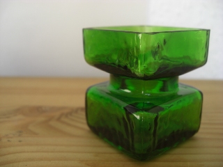 デンマークで見つけました。Leksak初登場!!フィンランドのRiihimaen Lasi「Pala」シリーズです。これは以前から手に入れたかった商品で、やっとめぐり合えました★お天気のいい日にアンティークマーケットでキラキラ光っていました。透き通ったグリーンが高貴なキャンディーのようで、とてもお上品です。お店のおばさんは、同じデザインで、大小の紫を2色グラデーションで並べてバスルームに飾っているそうです。小さな野の花を束ねて入れても、大きな1輪を短く切って入れてもとても様になる事でしょう。何も入れなくても、インテリアとして大活躍まちがい無しです! ★口の部分良く見ないとわからない程度のものすごく小さいチップがありますが、大きな欠けやヒビはございません