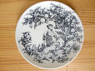 こちらはビョーンウィンブラッドの「真夏の世の夢」シリーズです。シェイクスピアのストーリーの一部を描いた、いつもとは少し違うタイプのイラストになります。このシリーズはウィンブラッドのシリーズの中でも独立しているようで、アンティークショップではまとめておいてあったりします。先日も行きつけのアンティークショップのおじさんが「シェークスピアシリーズのポットとシュガーボウルが手に入ったよ」と見せてくれたのですが、ちょっとお値段が・・・(汗)と言う事で諦めました。今回ご紹介は、表面にスクラッチが入っているため、お安くお届けさせていただきます!それでも、これ一枚でストーリーが頭に沸いてくるステキなプレートには変わりありません! ★3枚目のお写真で傷を見せるために暗くしましたが、もう少し傷が目立ちます。お問い合わせなどはお気軽にどうぞ!
