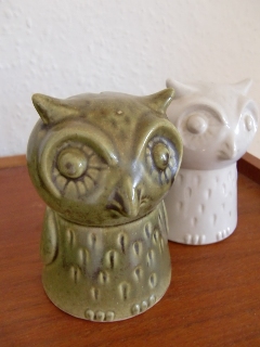 今は存在しないデンマークの銀行のノベルティー貯金箱です。何と陶器のフクロウ!以前緑と茶色の2羽が一緒にお嫁に行きました。とっても可愛くて貯金箱というより置物として飾っていただけます!