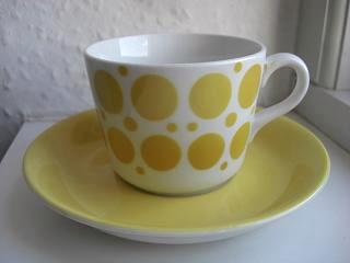スウェーデンで見つけました。ARABIA FINLANDのPOPなPOLKAシリーズのイエロータイプC&Sです。カップにはかわいい大小のドットがプリントされていて、なんだか元気をくれそうな C&Sですね★是非朝の1杯の毎日使いに使ってあげてください!