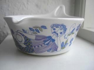 再入荷の商品デス!!デンマークの蚤の市で見つけました。 おなじみFiggioのTuri-Designです!リラックスしたおじさんがとてもかわいいムラサキ系のお色のソース入れです。ポットの底の真ん中にはお花のプリントがされています。ハンバーグのソースやサラダドレッシングを入れたり、お友達が来たときにナッツやキャンディーを入れて出してもかわいいですね♪ ★こちらは持ち主さんにしっかり使われたようで、裏が焦げていますが 見える範囲ではとてもキレイなコンディションで、大きな欠けや傷はありません。 セカンドハンド品としてご理解願います!
