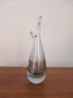 デンマークで見つけました。Holmegaardの花器シリーズでも人気の高い Beak Vaseです。このくちばしの様な形が特徴。商品によって、くちばしの部分のフォルムが違ってくるのですが、今回見つけたこの子は本当にバランスもよくて洗練されたフォルムだと思います! Holmegaard独特の、底の部分の厚みと、アッシュカラーがとてもきれいです。お花を入れなくてもそのままオブジェとしてもお楽しみいただけます。底部には年代の1955とロゴが削り込まれています。 ★欠け、ヒビはありません