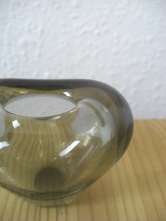 デンマークで見つけました。デンマークが誇るガラス製品の会社Holmegaardのヴィンテージミニ花瓶です。 Holmgaardの製品は本当にフォルムやカラーが洗練されていて素敵! この丸くて重い花瓶が手になじむ感じがたまりません。古いものは特に、ぽってり厚みがあって、いい感じにレトロ感が漂っていて、製品を見るだけで当時のインテリアなんかが頭に浮かんでしまいます。Holmgaardのヴィンテージ品は不思議な事にモダンなどんなインテリアにも何の違和感も無くマッチしてしまいます。コレがすばらしいところ。そのHolmgaardのミニ花瓶、一度お手にとってすばらしさを楽しんでください! ★1956年の製品ですので、底には擦れ傷がありますが、見えるところはとてもきれいです。
