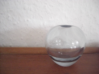 デンマークで見つけました。洗練されたガラスデザインで有名なHolmegaardのミニ花器です。横から見ると、まるで小さなガラスのリンゴのようなフォルムです。そのてっぺんに小さな穴が開いていて、短く切った切花や、道に咲いている小さなお花たちを挿せる様になっています。ちっちゃいのに凄い厚みなのですごく重たいです!スムースな手触りと、手にすっぽり納まる感に愛着がわいてしまいます♪裏にはロゴ入りで1962年のもののようです。クイストゴーな雰囲気がお好きな方、「和」と調和させたい方に特にオススメです。 ★欠け、ヒビはありません。 ●H6.5x幅大きいところ6.5