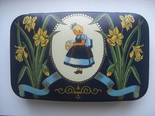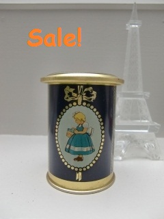 かわいいIrmaちゃんのレトロ缶がまたやって来ました!デンマークのIRMAスーパーのキャラクターとしても有名ですよね。 ブルーのドレスを着て、バスケットを持ってショッピング中でしょうか?蓋には6人のIrmaちゃんが楽しそうに踊っているイラストで、見ているだけでも微笑んでしまいます♪蓋の裏には「小さなIrmaちゃんが住んでいるところでは最高で安いものが買えちゃう!」というようなニュアンスの事が書いています。 缶の中のコンディションも大変きれいです。外側の底の辺りにはどうしてもサビが見られますが、古いものですので「味」として楽しんで下さいね♪ 飾るもよし、お茶の葉っぱやコーヒーを入れるもよし、ビスケットを入れたりもいいですね!