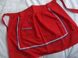 デンマークで見つけました。とってもかわいらしい真っ赤なエプロンです。ウェストの真ん中の辺りのデザインがすてき。そして、チロリアンテープで可愛くデコレーションされています。ポケットにもちょこっとアクセント♪♪是非コレをつけて楽しくキッチンに立ってくださいね! ★ほつれ、破れもなくきれいなコンディションです。