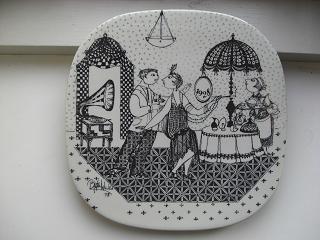 デンマークで見つけました。 ビョーンウィンブラッドの1928年頃の華やかな上級社会を描いたプレートです。スクエアーなんですが、少し丸みを帯びていて柔らかい印象です。お部屋に飾るもよし、もちろんデザートプレートやチョコレートプレートとしても可愛く使っていただけること間違い無しです★ なんだかレコードから音楽が聞こえてきそうですね・・・ ★欠けやヒビもなく、きれいなコンディションです。