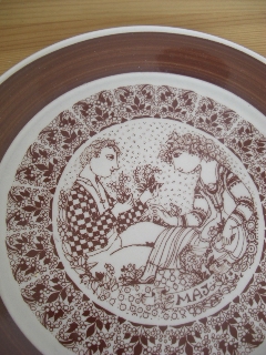 デンマークで見つけました。ビョーンウィンブラッドのかわいいプレートです。表にはお花を摘みながら何かお話をしているカップルが描かれています。見ているだけで気分があったかくなるプレートです♪