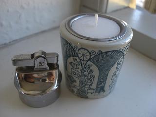 デンマークのアンティークショップで見つけました。 Nymolleの珍しいライターです!あまりにも可愛くて一瞬目を疑いました!「ラ、ライター??」トップが外れるようになっていて、裏側のネジをはずすと中に綿のようなものがつまっていてオイルを少しだけしみこませるらしいです。「日本でもライターのオイルが手に入ると、まだ使えると思うよ」と、お店のおじさんが言ってました。(実際今オイルが気のせいしかしみこんでいないんですが、火花は散ります) ★これだけではありません★ トップのライターの部分をはずすと、なんとキャンドルホルダーにはや変わり!言う事なしの気の利いたデザインで、ワタクシ店長、超オススメです! ◆欠けやヒビはありません!