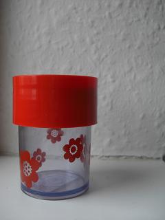 デンマークで見つけました。出品中のクリーム色のキャニスターと同じサイズですがこちらはパウダー用で、口のところに小さな穴の開いているふたがついています。ボディーも一箇所だけ花びらが擦れているところがあるだけで、スクラッチもほとんど無くとてもキレイなコンディションです!!出品中の同じ赤シリーズを揃えても、クリーム色で色違いも可愛いデスね♪