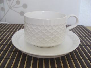 デンマークで見つけました。クイストゴーデザインのPaletのC&S「白」です。Cordialと同じで、ハートのような柄が並んでいます。カップのフォルムもシンプルで洗練されていますね!白い食器がお好きな方にも是非このクイストゴーのC&Sをオススメします♪ 只今出品中のライトグレーとペアーで使うのもステキ!★欠けやヒビはありません。 Ф約8cm x H6cm ソーサーФ約14cm