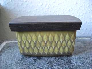 デンマークで見つけました。Quistgaardの大人気Reliefシリーズのバターケースです。(バックスタンプ無し)バターケースとしてはもちろん、ティーバッグや小物入れとしても大活躍★ インテリアとしてもかわいらしく飾っていただけます!!コチラの内部はイエローでフタはダークブラウンです。★内部によく診ないとわからない程度のバターナイフで付いたと見られる薄い傷がありますが、欠けやヒビはありません ●L11.5xW8xH6.5cm