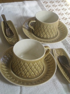 デンマークで見つけました。手元にあるクイストゴーのReliefのC&Sたちをどうしてもお嫁に行かせてあげられないのでミニトレイとセットにして、それも【2客セット】にして計4点をお得にお届けすることにしました!!秋に向けてこういった色使いがとってもしっくりくるんですよね♪パートナーとのコーヒータイムに、お友達とまったりする時間に・・・どうぞReliefで楽しんでください。このセットはお得ですよ♪ ★どれも欠け、ヒビもなくキレイなコンディションです。バックスタンプはありませんが、ミニトレイにはKronjyudenのシールがあります。トレイの1枚にはRelief似に良くある、カルキのようなものがみられます