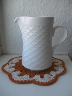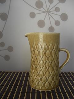 デンマークで見つけました。商品を見つけた時に「クイストゴーかな?」と思って見つめていたらお店のオバサンが近寄ってきて「これ、クイストゴーよ、知ってる?」と言われました。「あ!やっぱりそうですか?でも見たことない・・・・」と言うと「でしょ?レアなのよ、コレ!!」と言って、手にとって自慢そうに見せてくれました。「お花を入れてもいいですね」と言うと「でもざっくりたっぷり入れないとダメよ!バランスが可愛いんだから!」と・・・。コンディションも色もきれいだったので、じっくり値切って手に入れてきました(笑)手に入れたい方はお急ぎください!! ★欠けやヒビもなくキレイなコンディションです。