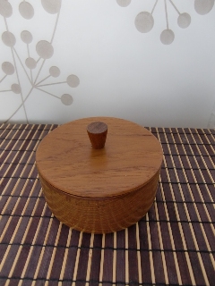 デンマークで見つけました。丸くてシンプルな木のケースです。もち手が取っても「北欧」♪厚みもあって、しっかりした作りです。カフェシュガーを入れても可愛いっぽいですね。リビング、食卓、お部屋、キッチン・・・いろいろなところで活躍しそうです
