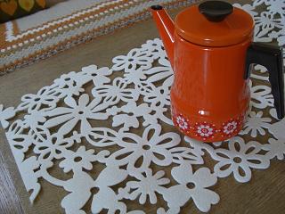 デンマークで見つけました。この時期デンマークではポスケ(イースター)の為、町のショップが黄色や緑、白、オレンジに彩られています。かわいい雑貨や食器をあちらこちらで目にします。そこで私のレーダーに引っかかったのがこれ。フェルトの鍋敷きなどは良く見ますが、長いライナーはどうですか? テーブルに敷いてライナーとしてもいいですが、少し小さく切ってランチョンマットにも! 棚の上からたらしてもカワイイっぽいですね♪お好きなサイズ、形に切って楽しんでください!! ★この商品は、ちょうどいい筒が見つからない場合、折りたたんで封筒で発送させて頂くかもしれません。その場合の折線はご了承ください。